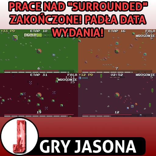 Czas na kolejny artykuł po znacznie dłuższej przerwie! Nie jest tajemnicą, że dużo pracuję, a wakacje mam tylko z nazwy. Mimo wszystko, przynoszę Wam wszystkim w końcu wspaniałą nowinę! Prace nad "Surrounded" zostały zakończone i czekają mnie tylko sprawy dotyczące samego eksportu gry oraz przygotowań do publikacji na Newgrounds, itch.io i po raz pierwszy w mojej historii, na Google Play! Zapraszam do środka!