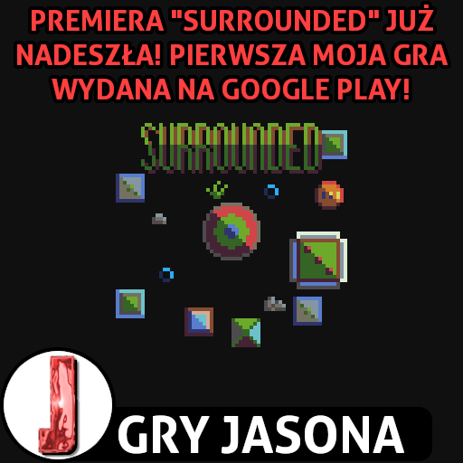 Nastał wielki dzień dla mnie i mojej działalności!!!!! Mamy 20 października, a to oznacza, że premiera "Surrounded" jest DZISIAJ!!! Gra została już przeze mnie opublikowana na serwisy Newgrounds, itch.io oraz po raz pierwszy, na Google Play!!! Programowanie jeszcze nigdy nie było dla mnie aż tak męczące. Jestem cholernie ciekawy czy inna platforma może zdziałać cuda. Zapraszam Was do środka!