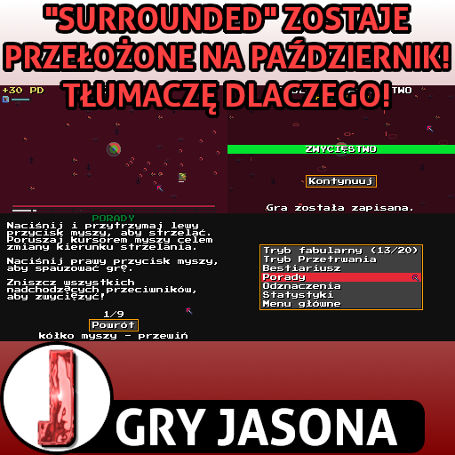 Należą się Wam wyjaśnienia odnośnie "Surrounded" i to od dawna. Miałem na głowie przygotowania do obrony pracy inżynierskiej przez co byłem zbyt mocno zaabsorbowany, że nie mogłem znaleźć ani chwili na redagowanie. Te klocki są już za mną, zatem piszę do Was i w te pędy wyjaśniam czemu gry nie ma do tej pory, a mamy już ostatni dzień września.