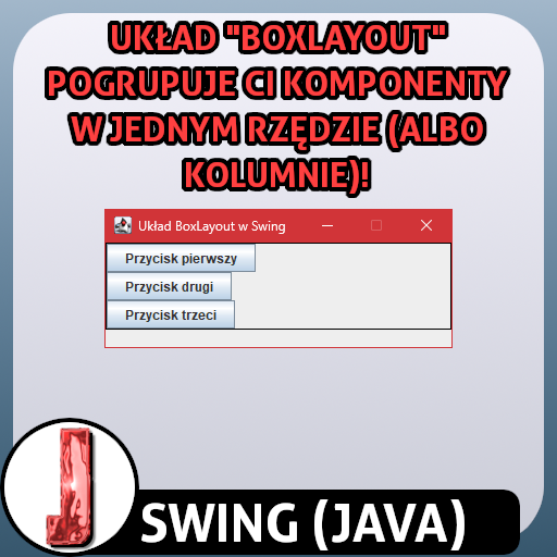 Czy jesteś gotowy(-a) na poznanie kolejnego układu jaki znajduje się w bibliotece "Swing" 😄? Jeżeli pragniesz koniecznie mieć po jednym komponencie w danym rzędzie bez względu na to, czy wyczerpuje całą wolną szerokość, czy nie, to poznaj układ stworzony do tego celu 🎯. "BoxLayout" w "Swing" i wszystko staje się jasne 😁!