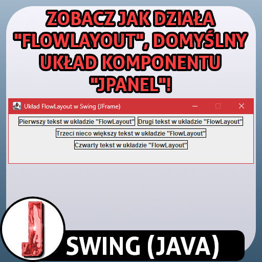 Czas przedstawić Tobie kolejny układ jaki występuje w bibliotece "Swing" - mianowicie, "FlowLayout" 🔥! Dowiesz się nie tylko tego, w jaki sposób ustawić ten układ, lecz także jak on wpływa na wygląd komponentów, gdy umieścimy je w ramce albo w panelu ⚡! Wchodź, zapraszam 😊!