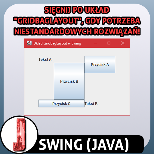 Jesteś gotowy(-a) na wariant układu w "Swing", który daje najwięcej elastyczności (i z tego powodu jest najtrudniejszy w obsłudze 🧠) 🙂? Teraz czas na układ "GridBagLayout", czyli tworzenie nieregularnych siatek komponentów w "Swing"! Ostrzegam - jest o wiele bardziej skomplikowany, niż poprzednik o podobnej nazwie ⚠️.